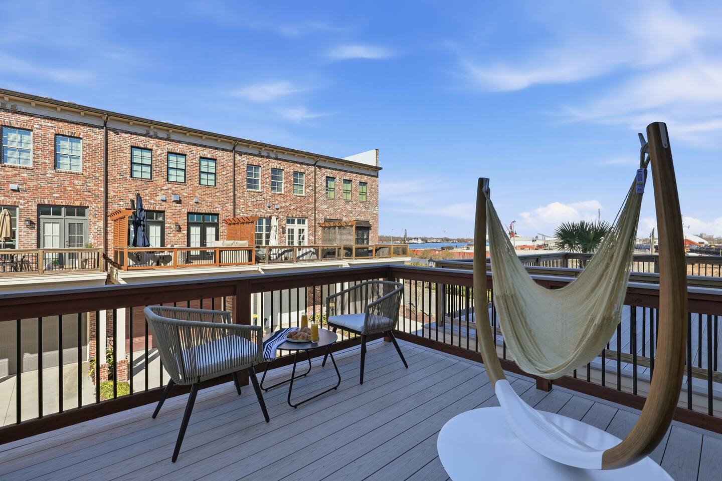 Step into modern riverfront luxury. Unlike standard vacation rentals, this home features a chef-grade kitchen with Wolf appliances, a gas fireplace, and dual King Suites, making it the ultimate retreat for groups who refuse to compromise on comfort. The Layout & Living Areas This is a three-story townhome designed for gathering. Main Living Level (2nd Floor): An open-concept masterpiece featuring a spacious living room with a gas fireplace and a Queen sleeper sofa. Chef’s Kitchen: The heart of the home! Equipped with professional Wolf appliances, and a massive island with bar seating. Whether you are hiring a private chef or cooking a family breakfast, this kitchen handles it in style. Dining: A dedicated dining area that flows onto the private balcony. Open the French doors to let the river breeze in while you eat. Bedrooms & Bathrooms (Sleeps 8) We know sleep quality matters. All bedrooms feature premium linens and Smart TVs. Primary Suite (3rd Floor): A massive sanctuary featuring a King Bed, walk-in closet, and a spa-inspired ensuite bathroom with double vanities and a large glass-enclosed shower. Guest Suite 2 (3rd Floor): A second King Bed with its own private ensuite bathroom. (Perfect for two couples traveling together!) Guest Suite 3 (1st Floor): Private and quiet, featuring a Queen Bed and an ensuite bathroom. This room is ideal for guests who want separation from the main living areas. Additional Sleeping: The living room sofa converts into a comfortable Queen Bed. Outdoor Living & Views Private Balcony: The perfect spot for "Ship Watching." Enjoy your morning coffee or evening wine while massive container ships glide past on the Savannah River—a view you can’t get anywhere else. Resort-Style Amenities Why choose between a home and a hotel? We offer (for a nominal fee via ResortPass) access to Savannah’s top resort amenities, including: Heated Pools & Hot Tubs Fitness Centers Luxury Spa Services Just ask us after booking to add this to your stay! Guest Access & Convenience Parking: Includes a private 2-car garage (a rare luxury in downtown Savannah). Tech: Fast 1GB Wi-Fi and Smart TVs throughout.